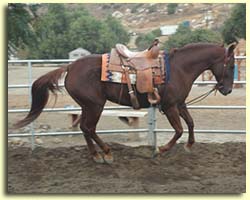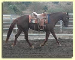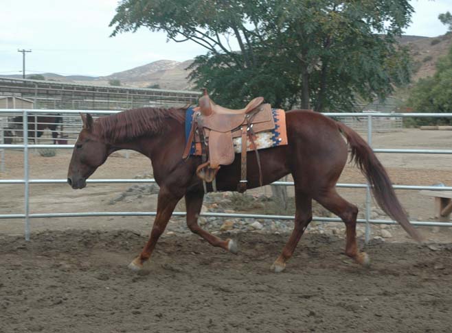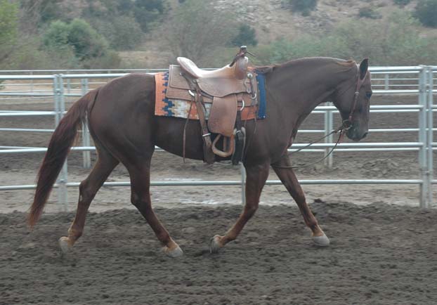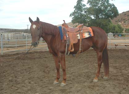 Let the downturn in the economy work for you, this is a wonderful horse at a wonderful price! This pretty 2000 AQHA Appendix mare is ready to find her new home. Her owners defaulted on her board , we would like to recover what is owed but will negotiate to the right home. She is utd on shots and teeth, we have been handling and riding her for a few weeks now and she is a very ,very nice horse. Very good on the ground, clips and ties went right in the trailer. Took her out after almost a week , no buck or spook. She will round up, get in the bridle and off your hands, with the right rider this could be an outstanding horse.. She was used for barrel racing she is NOT HOT. Very calm dispositoin and a wonderful sensible brain, we are told she has had some Dressage training. She has a nice big stride and is a pretty mover. Tthis is a kind gentle horse that needs a good home. 15 hnds, Chestnut, shoes on front ,